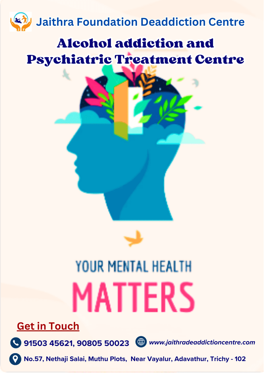 Best alcohol deaddiction, Psychiatric treatment centre trichy. Jaithra Foundation deaddiction, Psychiatric treatment centre trichy. Treatment for alcohol addiction, drug abuse Psychiatric problems.