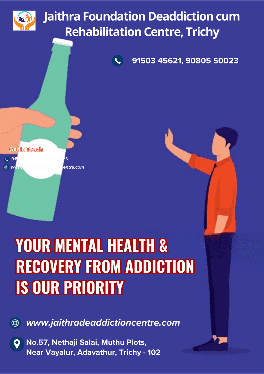 Jaithra Foundation deaddiction centre trichy Best treatmet for alcohol addiction, drug addiction and Psychiatric problems.