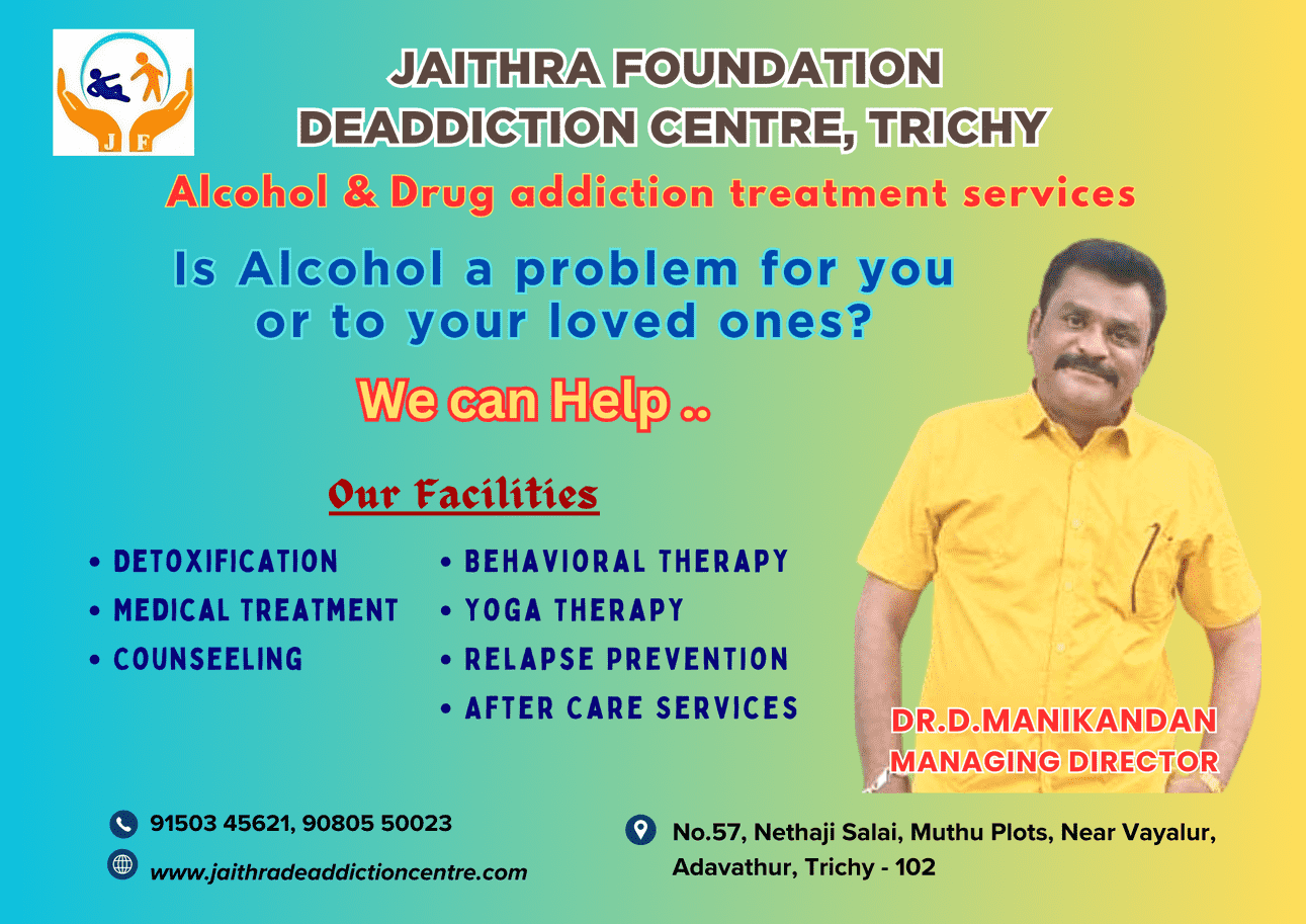 jaithra foundation de addiction centre trichy, top treatment centre for alcohol addiction drug addiction for men trichy
